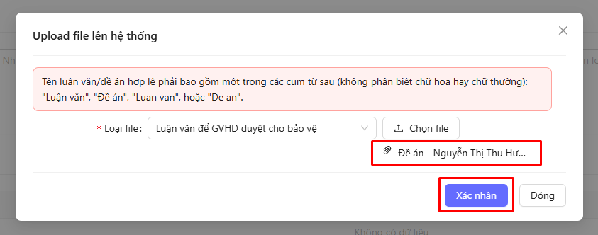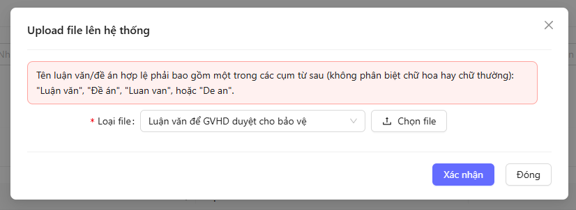 - Nhấn "Chọn file" và tải lên luận văn từ thiết bị.
